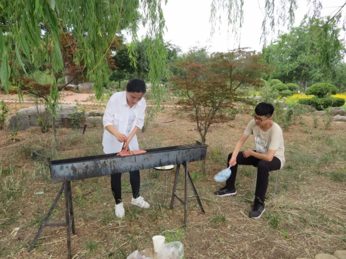 燒烤過程中女同學(xué)互相配合著串肉,男同學(xué)則忙著生火、加炭,場面熱鬧。大家都拿出了“十八般武藝”,展示出自己的動手能力和美食鑒賞能力,每個(gè)人笑容滿面,洋溢著喜悅的氣氛。