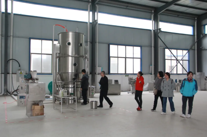 山東農(nóng)業(yè)大學(xué)劉建柱教授和藥學(xué)系老師們參觀了公司的科技研發(fā)中心、生產(chǎn)車間等,邢主任對廠區(qū)內(nèi)的環(huán)境設(shè)施和運(yùn)作流程、工藝流程等進(jìn)行了講解。