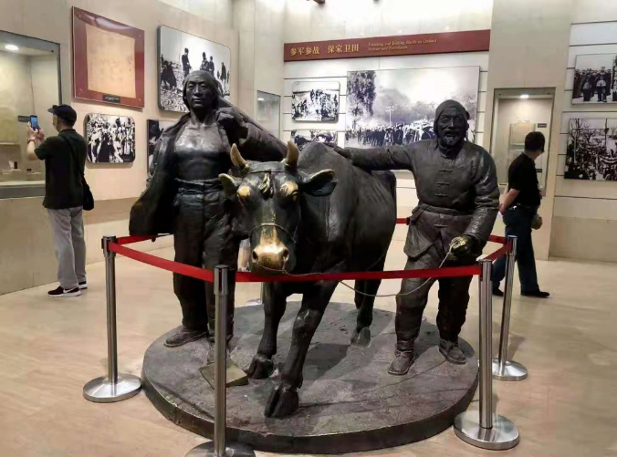 走進(jìn)西柏坡紀(jì)念館,首先映入眼簾的是“新中國(guó)從這里走來(lái)”大型銅雕,老一輩革命家群像栩栩如生,堅(jiān)定的姿態(tài)、磅礴的氣勢(shì),仿佛整個(gè)都是用意志和執(zhí)著鑄造的,爆發(fā)出蓬勃的力量。
