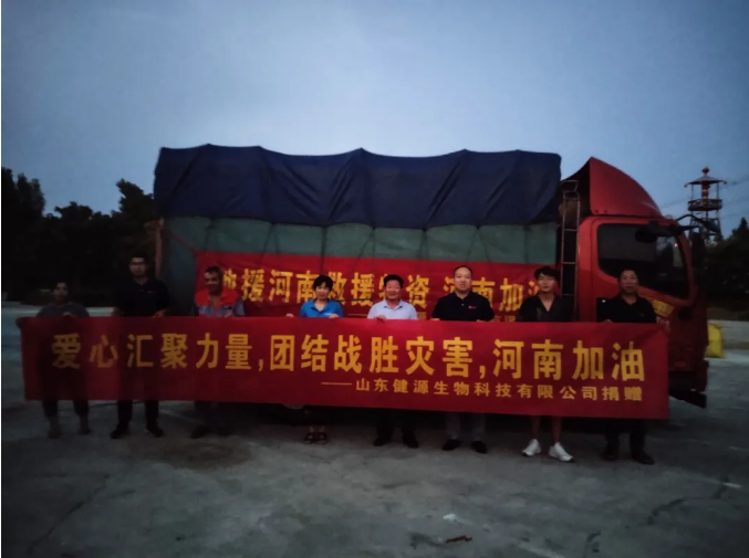 7月31日8時,救援物資發(fā)車儀式在山東健源生物寧陽工廠舉行,九三學(xué)社泰安市委劉彥濤秘書長、九三學(xué)社山東服裝學(xué)院支社侯家華主委、九三學(xué)社山東服裝學(xué)院副主委山東健源生物王誠董事長、董事長助理兼辦公室王玲主任等相關(guān)負(fù)責(zé)人出席發(fā)車儀式。
