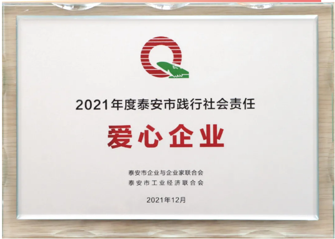 2021年12月26日,由泰安市企業(yè)與企業(yè)家聯(lián)合會和泰安市工業(yè)經(jīng)濟(jì)聯(lián)合會主辦的2021迎新年銀企聯(lián)誼會在泰安萬達(dá)嘉華酒店隆重召開。大會對本年度涌現(xiàn)出的愛心企業(yè)、企業(yè)文化成果和先進(jìn)個人予以通報表彰。