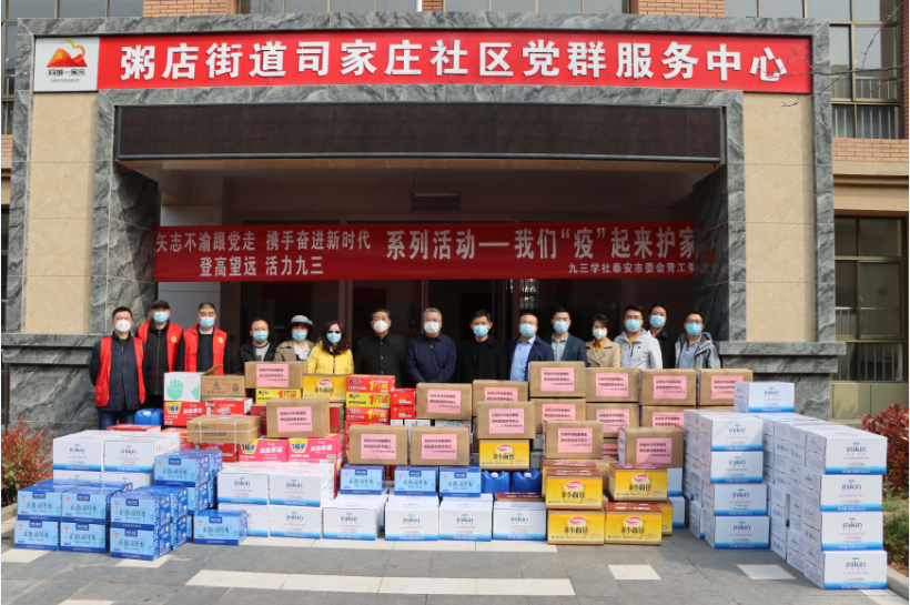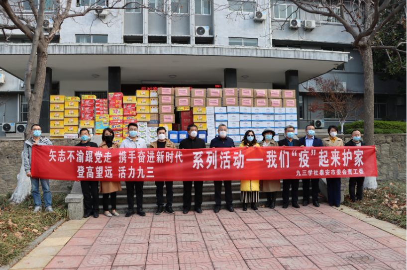 2022年4月2號(hào)上午,九三學(xué)社泰安市委會(huì)青工委集結(jié)社員,組織開展了“矢志不渝跟黨走、攜手奮進(jìn)新時(shí)代——我們‘疫’起來(lái)護(hù)家”愛心捐贈(zèng)活動(dòng),助力疫情防控。社員們先后來(lái)到岱岳區(qū)天平街道辦事處、粥店辦事處司家莊社區(qū)、泰山區(qū)省莊鎮(zhèn)東羊樓村等基層地點(diǎn),看望慰問(wèn)了在一線工作的防疫人員,并為他們送去醫(yī)用口罩48000只、消毒液320斤、75°酒精320斤、方便面110箱、礦泉水285箱、火腿腸、肉丸、面包等若干愛心物資,總價(jià)值五萬(wàn)余元,山東健源生物科技有限公司王誠(chéng)董事長(zhǎng)作為九三學(xué)社泰安市直機(jī)關(guān)基層委員會(huì)六支社主委代表公司參與此次愛心捐贈(zèng)活動(dòng)。