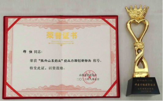 山東健源生物外宣部主任邢燭榮獲“振興山東奶業(yè)”奶業(yè)巾幗創(chuàng)新標兵稱號。