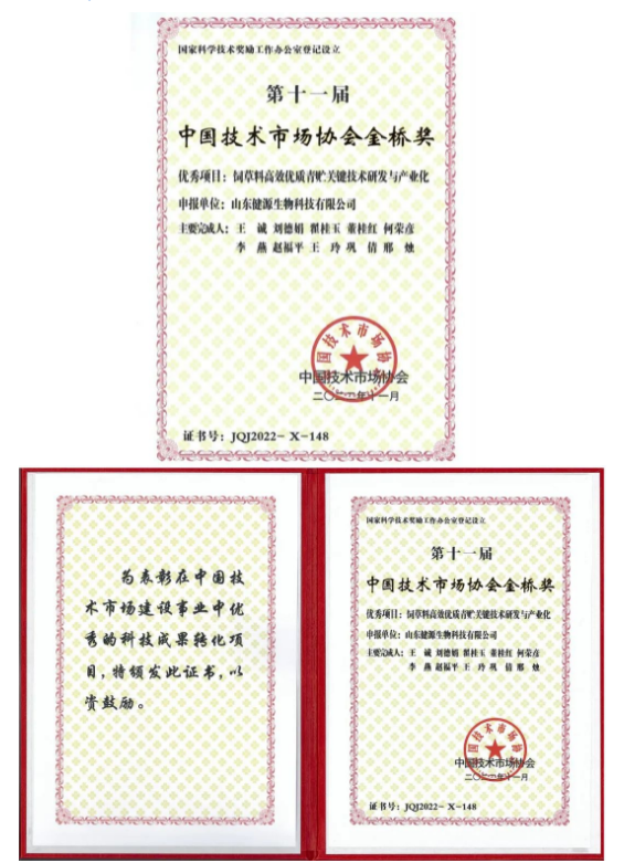 山東健源生物榮獲第十一屆中國技術(shù)市場協(xié)會(huì)金橋獎(jiǎng)優(yōu)秀項(xiàng)目獎(jiǎng)