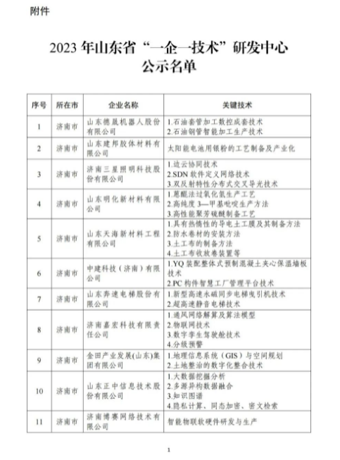 附《2023年山東省“一企一技術(shù)”研發(fā)中心公示名單》