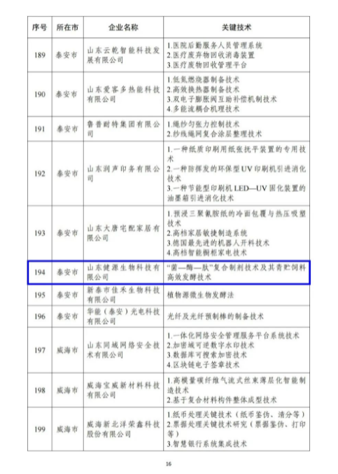 山東省工業(yè)和信息化廳組織開(kāi)展了2023年山東省“一企一技術(shù)”研發(fā)中心認(rèn)定工作,經(jīng)企業(yè)自愿申報(bào)、有關(guān)部門推薦、專家論證等程序,山東健源生物科技有限公司被認(rèn)定為2023年山東省“一企一技術(shù)”研發(fā)中心。