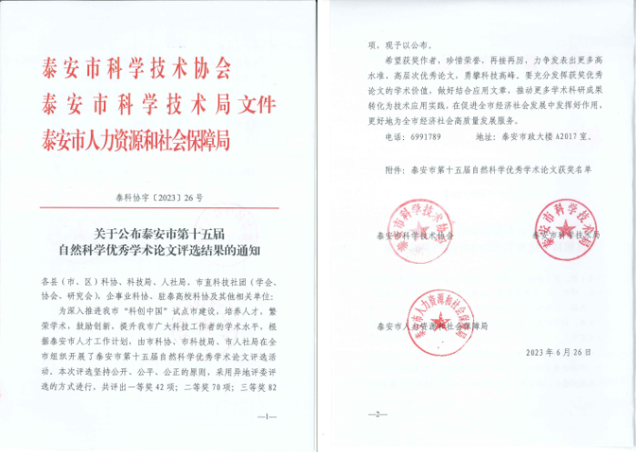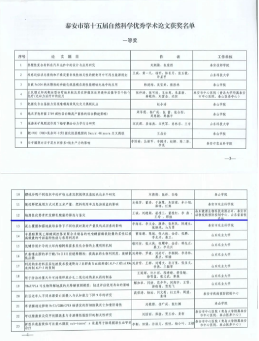 山東健源生物榮獲泰安市第十五屆自然科學優(yōu)秀學術(shù)論文一等獎