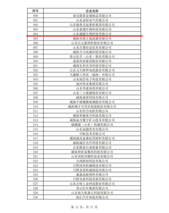 山東健源生物被認(rèn)定為2023年度山東省瞪羚企業(yè)