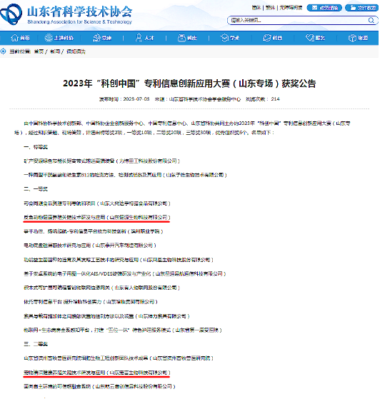 附《2023年“科創(chuàng)中國”專利信息創(chuàng)新應(yīng)用大賽(山東專場)獲獎(jiǎng)公告》