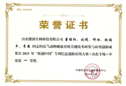 山東健源生物榮獲2023年“科創(chuàng)中國”專利信息創(chuàng)新應(yīng)用大賽(山東專場)一等獎(jiǎng)