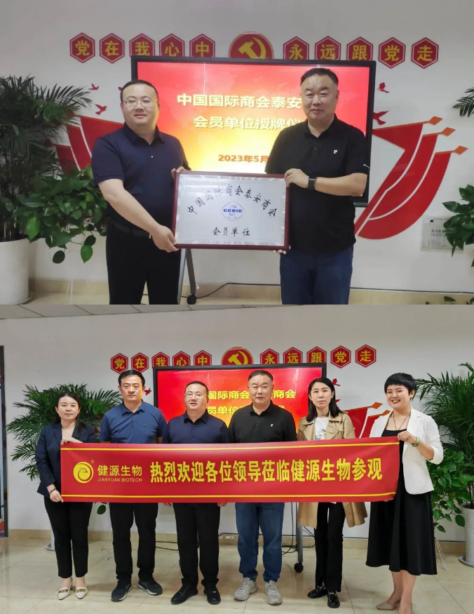 發(fā)布時間:[2023-6-28 9:19:4] 瀏覽量:4151次近日,泰安市國際商會秘書長趙傳兵一行四人專程來到山東健源生物科技有限公司參觀指導,并授予山東健源生物科技有限公司為“中國國際商會泰安商會會員單位”。