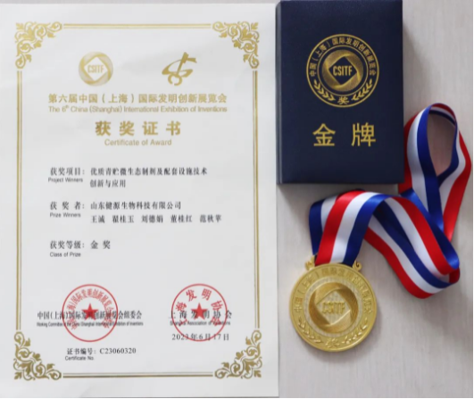2023年6月17日,第六屆中國(上海)國際發(fā)明創(chuàng)新展覽會圓滿閉幕,頒獎典禮在上海世博館隆重舉行,山東健源生物科技有限公司《優(yōu)質青貯微生態(tài)制劑及配套設施技術創(chuàng)新與應用》項目榮獲第六屆中國(上海)國際發(fā)明創(chuàng)新展覽會金獎。