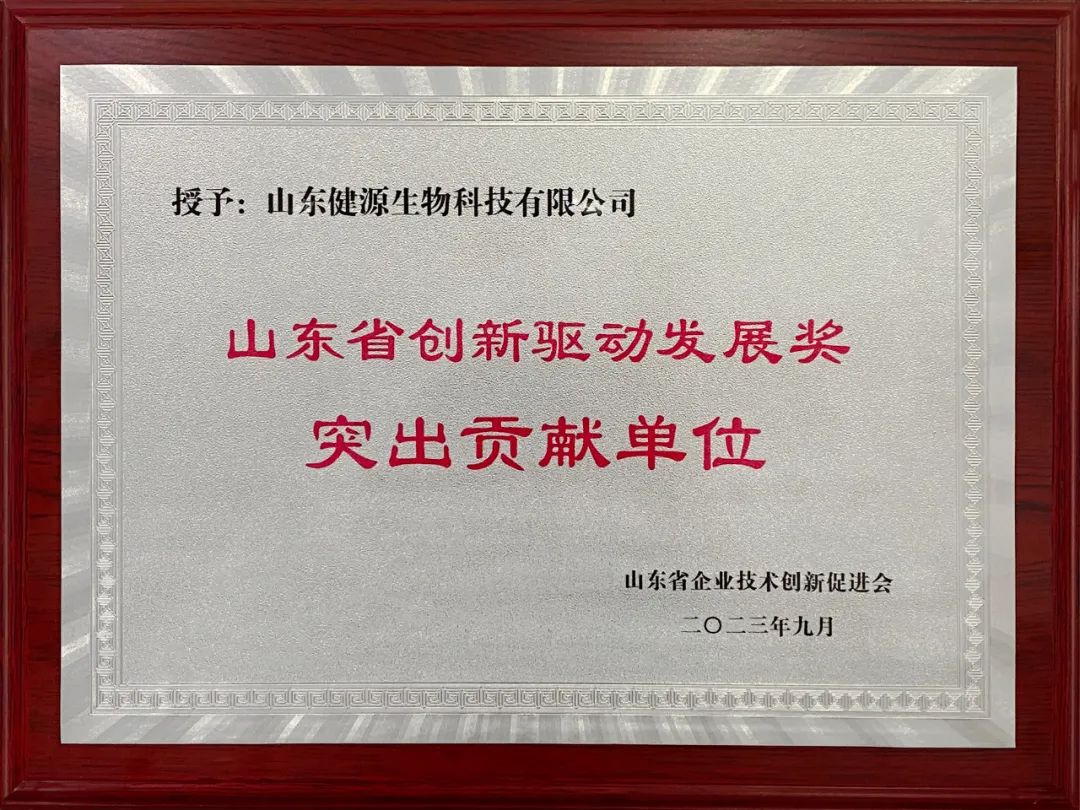 山東健源生物科技有限公司榮獲山東省創(chuàng)新驅(qū)動(dòng)發(fā)展獎(jiǎng)突出貢獻(xiàn)單位