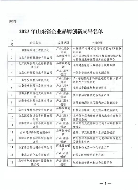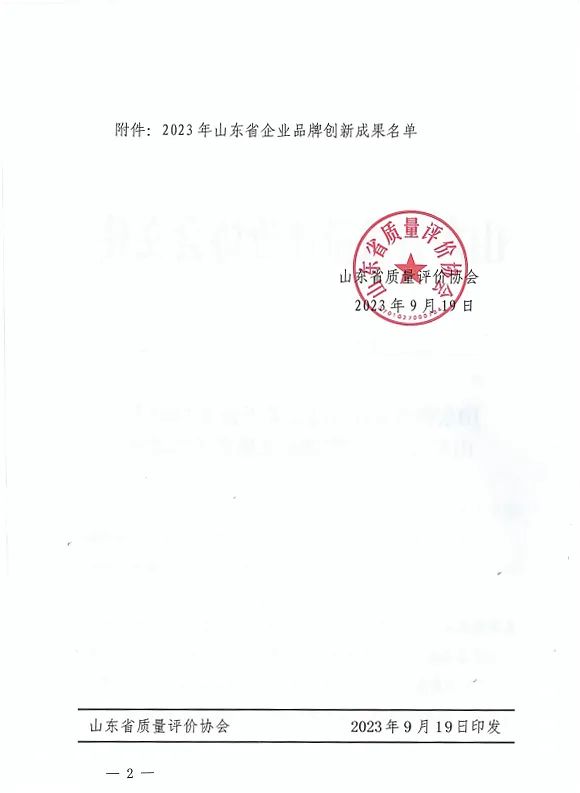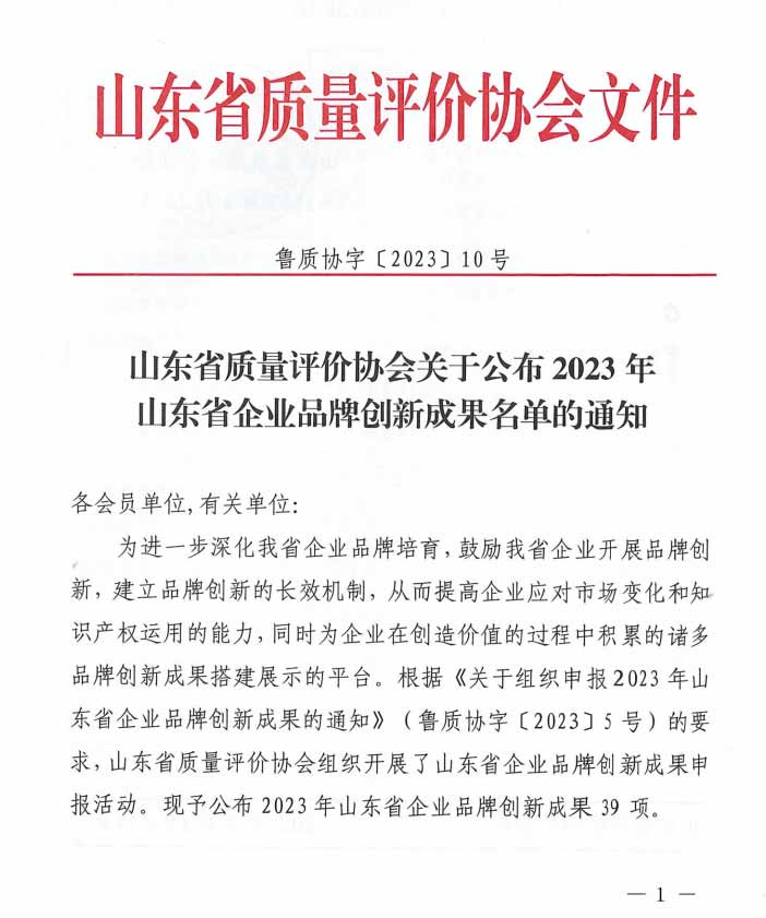 附:《山東省質(zhì)量評價協(xié)會關(guān)于公布2023年山東省企業(yè)品牌創(chuàng)新成果名單的通知》