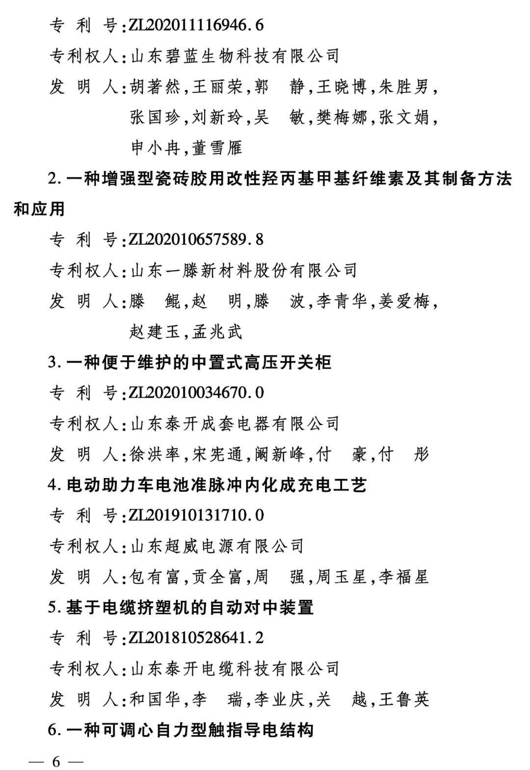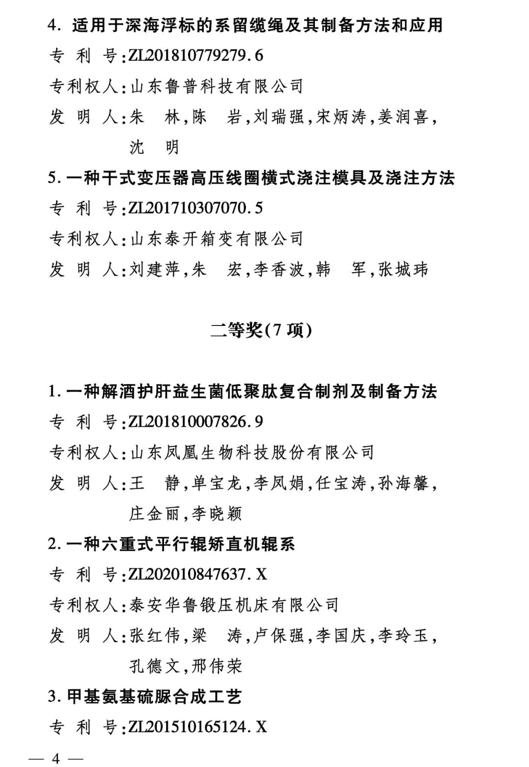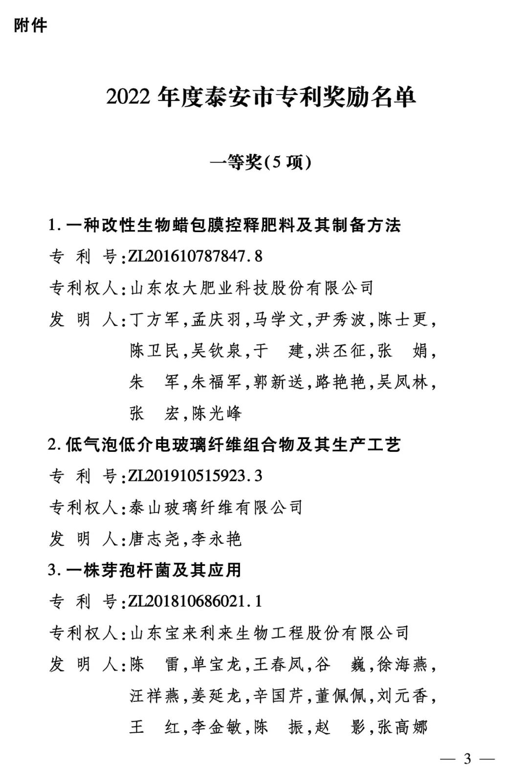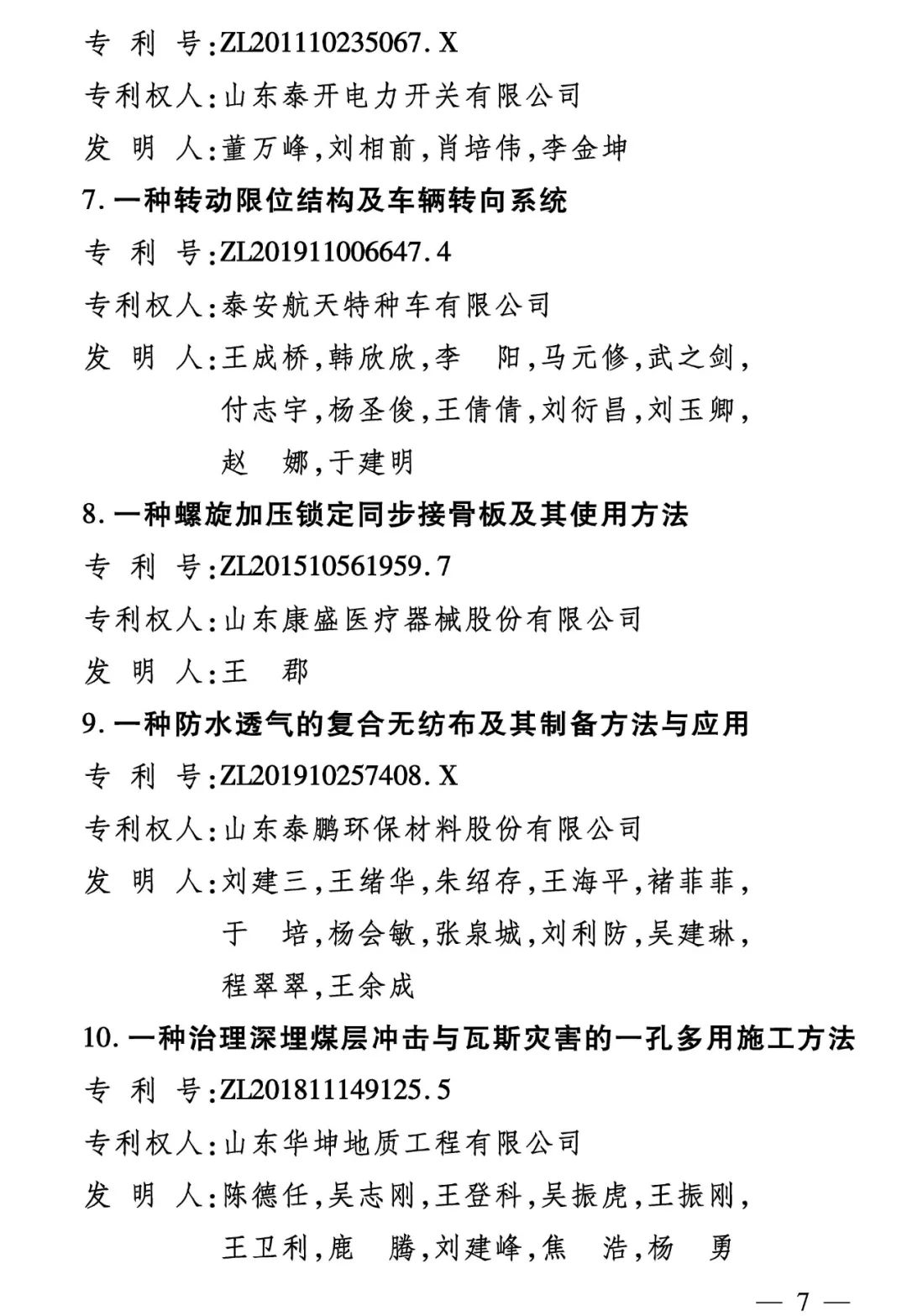 2022年度泰安市專利獎(jiǎng)