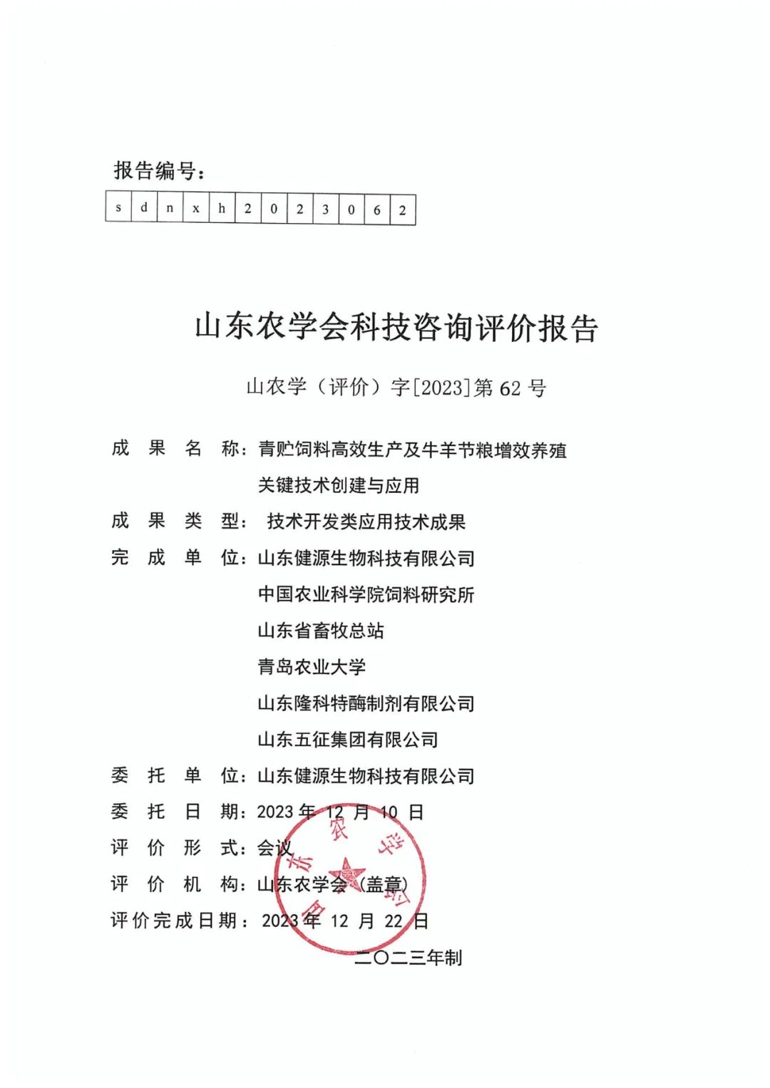 2023年12月22日,由山東健源生物科技有限公司聯(lián)合中國農(nóng)業(yè)科學(xué)院飼料研究所、山東省畜牧總站、青島農(nóng)業(yè)大學(xué)、山東五征集團(tuán)有限公司、山東隆科特酶制劑有限公司完成的“飼草料高效生產(chǎn)及節(jié)糧增效養(yǎng)殖關(guān)鍵技術(shù)創(chuàng)建與應(yīng)用”項目順利通過了科技成果評價。