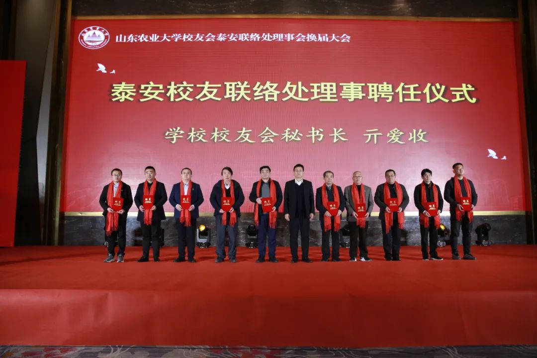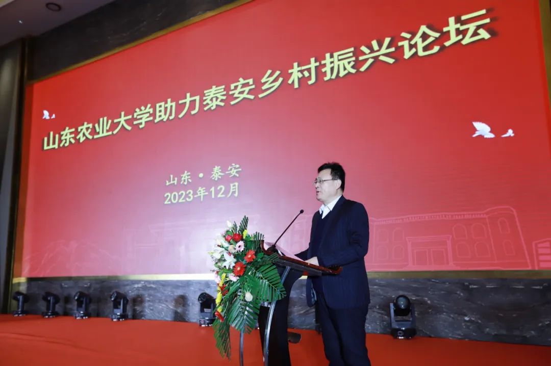 2023年12月31日,山東農(nóng)業(yè)大學助力泰安鄉(xiāng)村振興論壇暨山東農(nóng)業(yè)大學校友會泰安聯(lián)絡處理事會換屆大會在泰安舉行。泰安市人大常委會黨組副書記、副主任辛海明,泰安市政協(xié)副主席張步軍,山東農(nóng)業(yè)大學黨委副書記嵇景濤出席會議。山東農(nóng)業(yè)大學校友會秘書長亓愛收主持活動,山東健源生物科技有限公司董事長王誠出席會議。