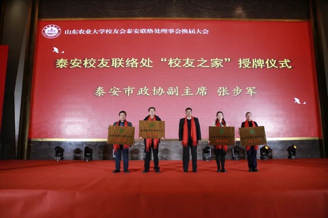 泰安市政協(xié)副主席張步軍為山東農(nóng)業(yè)大學校友會設在泰安地區(qū)的“校友之家”授牌。山東健源生物科技有限公司被授予山東農(nóng)業(yè)大學校友會“校友之家”單位。