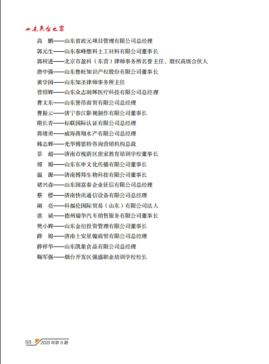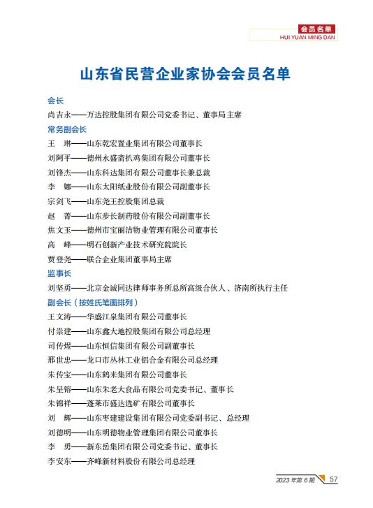 附:山東省民營(yíng)企業(yè)家協(xié)會(huì)會(huì)員名單