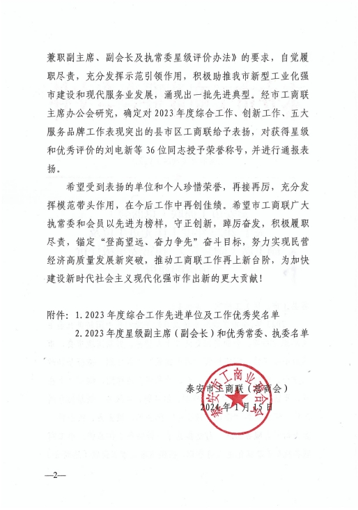 董事長王誠榮獲泰安市工商聯(lián)“優(yōu)秀常委”榮譽稱號