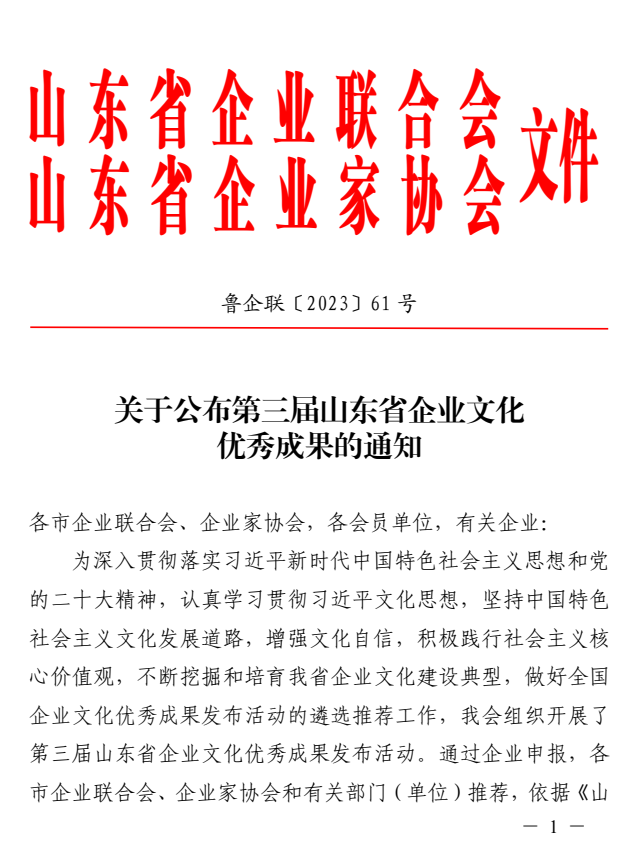 本次企業(yè)文化成果評(píng)選活動(dòng)由山東省企業(yè)聯(lián)合會(huì)、山東省企業(yè)家協(xié)會(huì)主辦,為深入貫徹落實(shí)習(xí)近平新時(shí)代中國(guó)特色社會(huì)主義思想和黨的二十大精神,認(rèn)真學(xué)習(xí)貫徹習(xí)近平文化思想,堅(jiān)持中國(guó)特色社會(huì)主義文化發(fā)展道路,增強(qiáng)文化自信,積極踐行社會(huì)主義核心價(jià)值觀,不斷挖掘和培育我省企業(yè)文化建設(shè)典型,做好全國(guó)企業(yè)文化優(yōu)秀成果發(fā)布活動(dòng)的遴選推薦工作。通過推出一批把握文化方向、時(shí)代脈搏的企業(yè)文化優(yōu)秀成果,堅(jiān)定廣大企業(yè)以文化強(qiáng)企之路,充分發(fā)揮企業(yè)文化在企業(yè)發(fā)展中的作用。