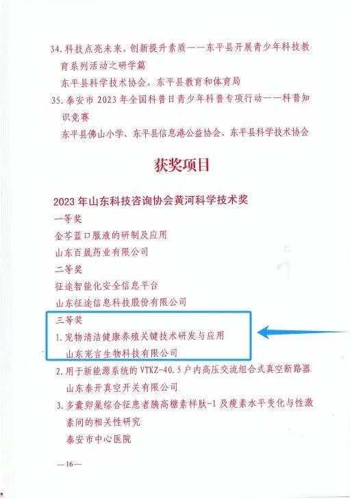 寵言生物榮獲2023年山東科技咨詢協(xié)會(huì)黃河科學(xué)技術(shù)獎(jiǎng)三等獎(jiǎng)