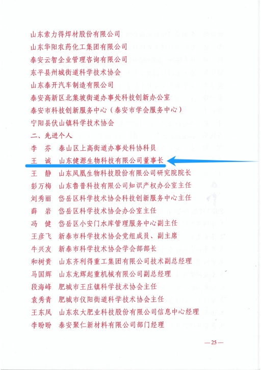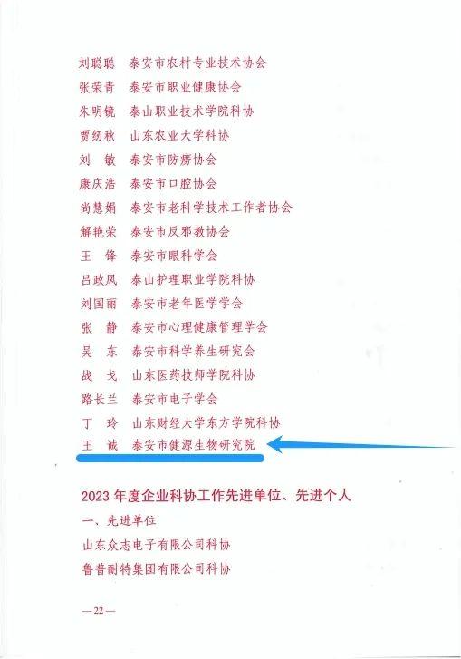 董事長(zhǎng)王誠榮獲2023年度企業(yè)科協(xié)工作先進(jìn)個(gè)人,健源生物榮獲先進(jìn)單位