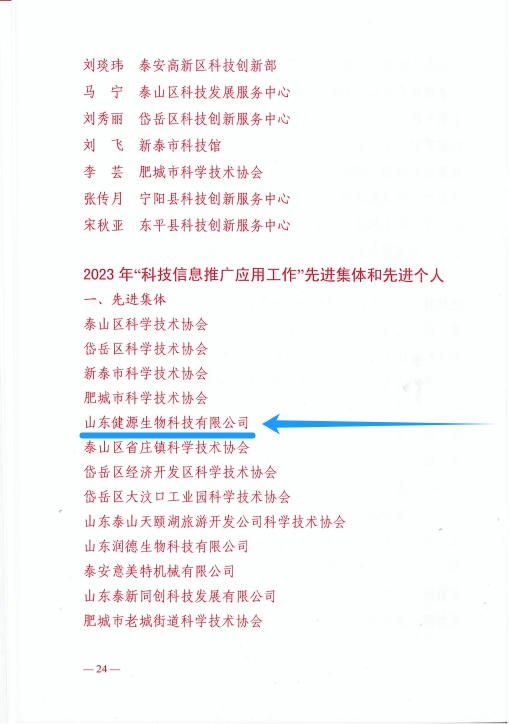董事長(zhǎng)王誠榮獲2023年“科技信息推廣應(yīng)用工作”先進(jìn)個(gè)人,健源生物榮獲先進(jìn)集體