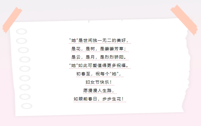 三月如歌,萬物齊吟。在這融融的春風中,在這盈盈的笑意里,我們迎來了一個特屬于女性的節(jié)日——第114屆“三八國際婦女節(jié)”。在此,山東健源生物科技有限公司向廣大女性同胞致以最崇高的敬意!