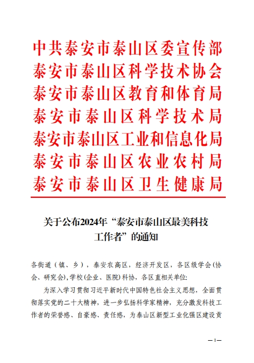 2024年泰安市泰山區(qū)“最美科技工作者”