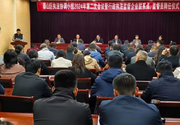 發(fā)布時(shí)間:[2024-10-26 17:27:23] 瀏覽量:2882次10月22日,泰山區(qū)舉行區(qū)委全面依法治區(qū)委員會(huì)執(zhí)法協(xié)調(diào)小組第二次會(huì)議暨行政執(zhí)法監(jiān)督企業(yè)聯(lián)系點(diǎn)、行政執(zhí)法監(jiān)督員聘任儀式。泰安市司法局黨委委員、四級(jí)調(diào)研員張昊寧到會(huì)并講話,泰山區(qū)委常委、區(qū)委政法委書記吳杰主持會(huì)議,各街道(鄉(xiāng)鎮(zhèn))、區(qū)直執(zhí)法部門分工負(fù)責(zé)同志,行政執(zhí)法監(jiān)督員、行政執(zhí)法監(jiān)督企業(yè)聯(lián)系點(diǎn)代表參加會(huì)議。