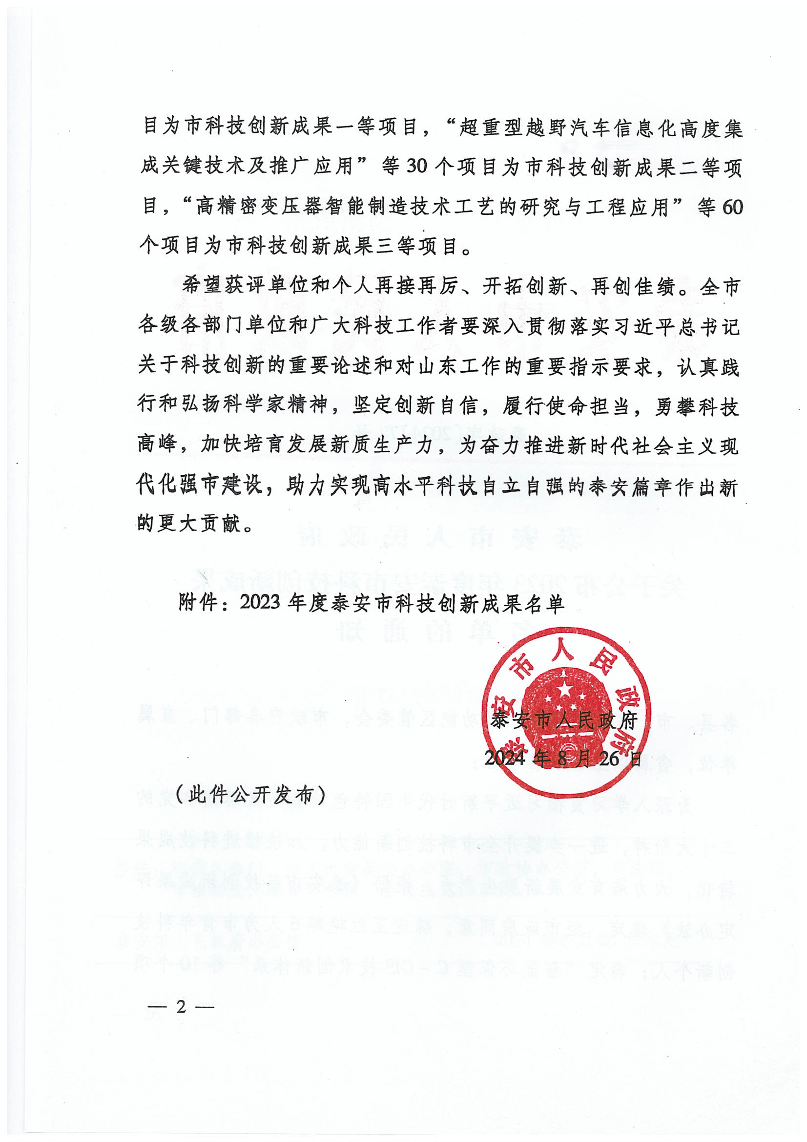 發(fā)布時間:[2024-11-1 15:54:35] 瀏覽量:3047次2024年10月31日,泰安市政府禮堂群英薈萃,全市科技大會在此盛大啟幕。市委書記、市人大常委會主任楊洪濤,省科技廳黨組書記、廳長孫海生出席會議并講話,市委副書記、市長李蘭祥主持,市政協(xié)主席武林中出席。