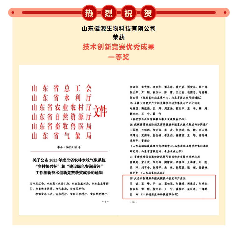 2024-1-23 健源生物榮獲2023年度全省技術(shù)創(chuàng)新競賽優(yōu)秀成果一等獎(jiǎng)