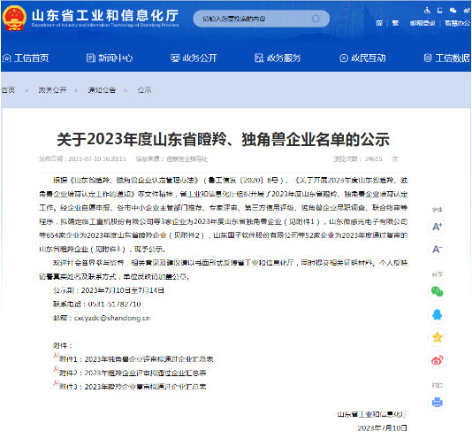 2023-7-14 山東健源生物被認(rèn)定為2023年度山東省瞪羚企業(yè)