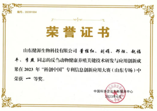 山東健源生物科技有限公司《反芻動物健康養(yǎng)殖關(guān)鍵技術(shù)研發(fā)與應(yīng)用》項(xiàng)目榮獲2023年科創(chuàng)中國專利信息...