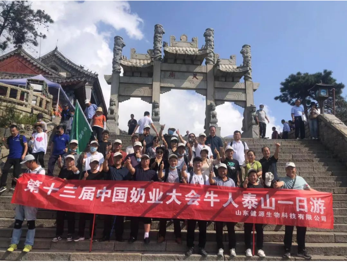 2022年9月6日,在第十三屆奶業(yè)大會(huì)、2022奶業(yè)D20峰會(huì)暨2022奶業(yè)展覽會(huì)期間,山東健源生物科技有限公司為感恩回饋各地牛人朋友對公司的支持和信任,公司精心安排了登泰山活動(dòng),登高望遠(yuǎn),為奶業(yè)加油!