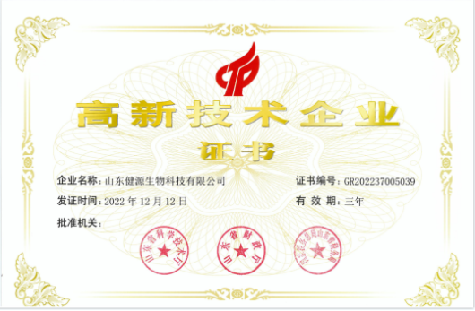 祝賀山東健源生物再次通過(guò)國(guó)家高新技術(shù)企業(yè)認(rèn)定