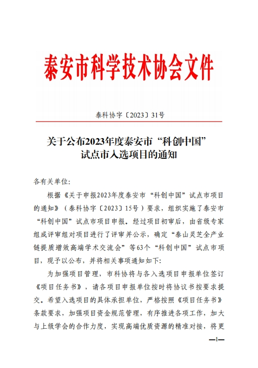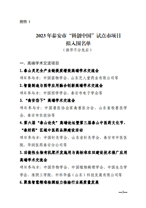 附:2023年泰安市“科創(chuàng)中國”試點市項目擬入圍名單