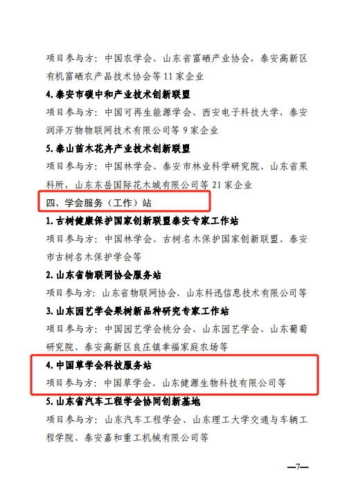 中國草學會泰安服務(wù)站落戶健源生物—“科創(chuàng)中國”試點市入選項目