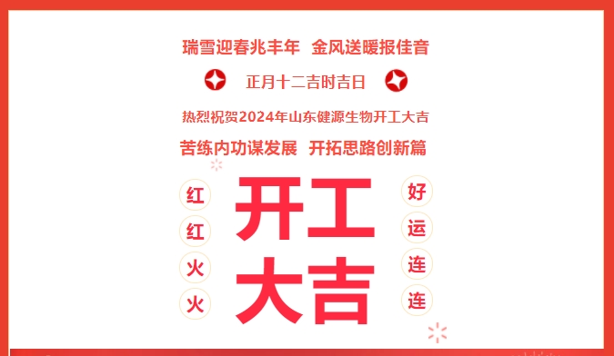 苦練內(nèi)功謀發(fā)展,開(kāi)拓思路創(chuàng)新篇!嶄新的2024已經(jīng)拉開(kāi)帷幕,2024年2月21日(農(nóng)歷正月十二),健源生物全體員工歡聚一堂,隆重舉行2024年山東健源生物科技有限公司開(kāi)工典禮。